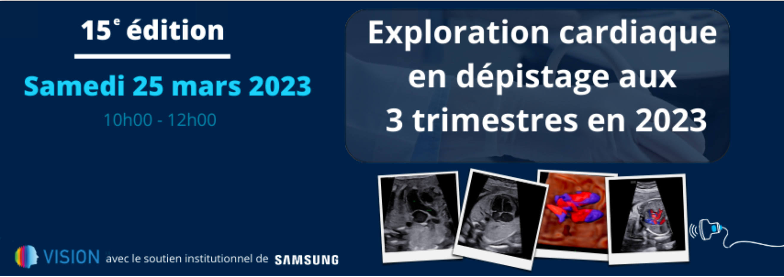 • Le 25 mars: Rejoignez le Dr Gueneuc Alexandra sur Revue vision pour Exploration cardiaque en échographie aux 3 trimestres en 2023. (Détails de l'évènement)