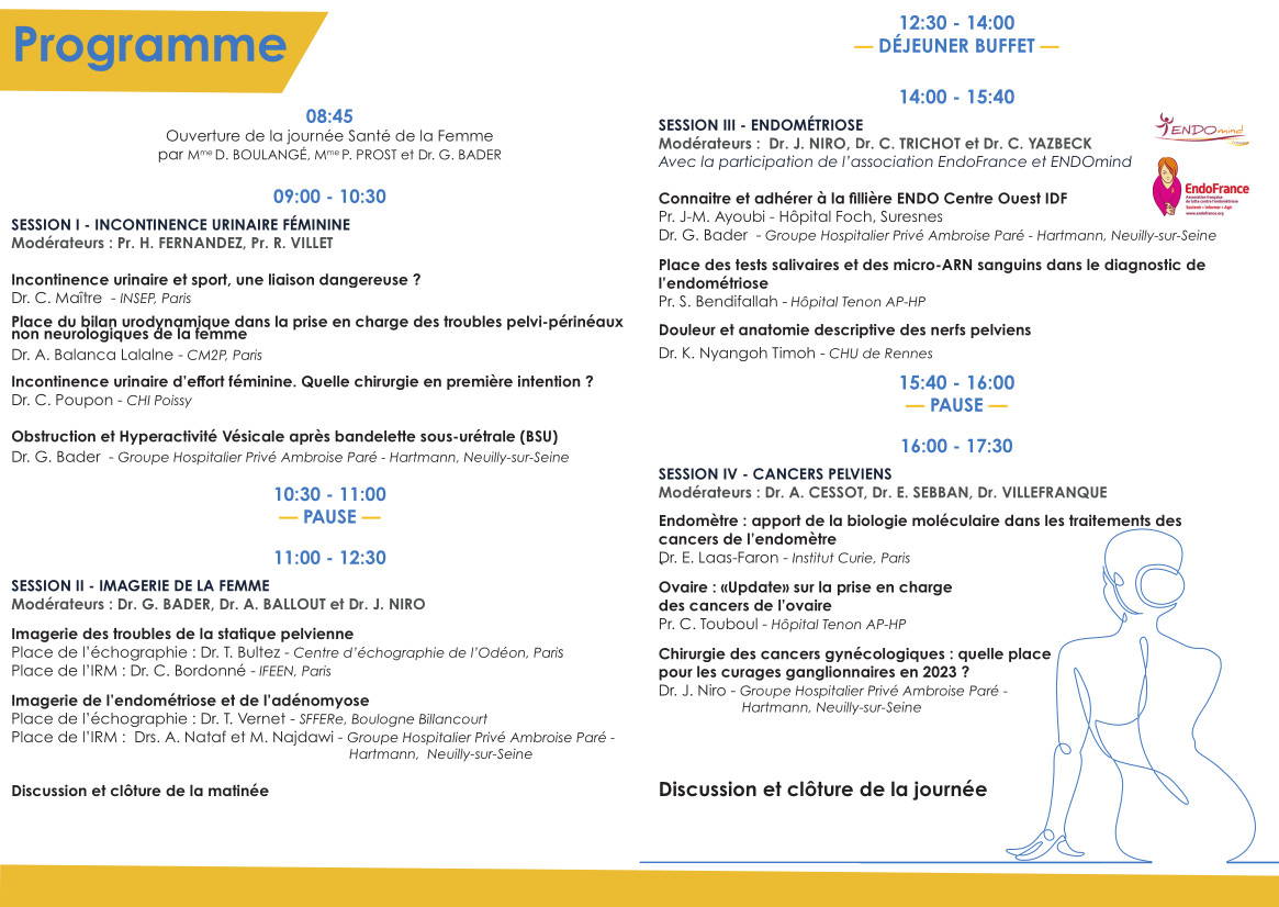• Le 30 mars: Venez écouter les Dr Ballout Alexandre et Dr Vernet Thibaud à la 2ème journée Santé de la Femme sur l'imagerie de l'endométriose et de l'adénomyose. (Détails de l'évènement)