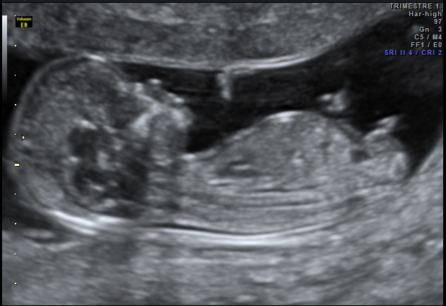• la morphologie précoce du foetus et la mesure de la clarté nucale. L’échographiste s’assure que l’enfant se forme correctement à ce stade. La mesure de la clarté nucale (mesure de l’épaisseur de sa nuque) participe à l’évaluation du risque d’anomalie chromosomique (trisomie 21) et du risque de malformation cardiaque.